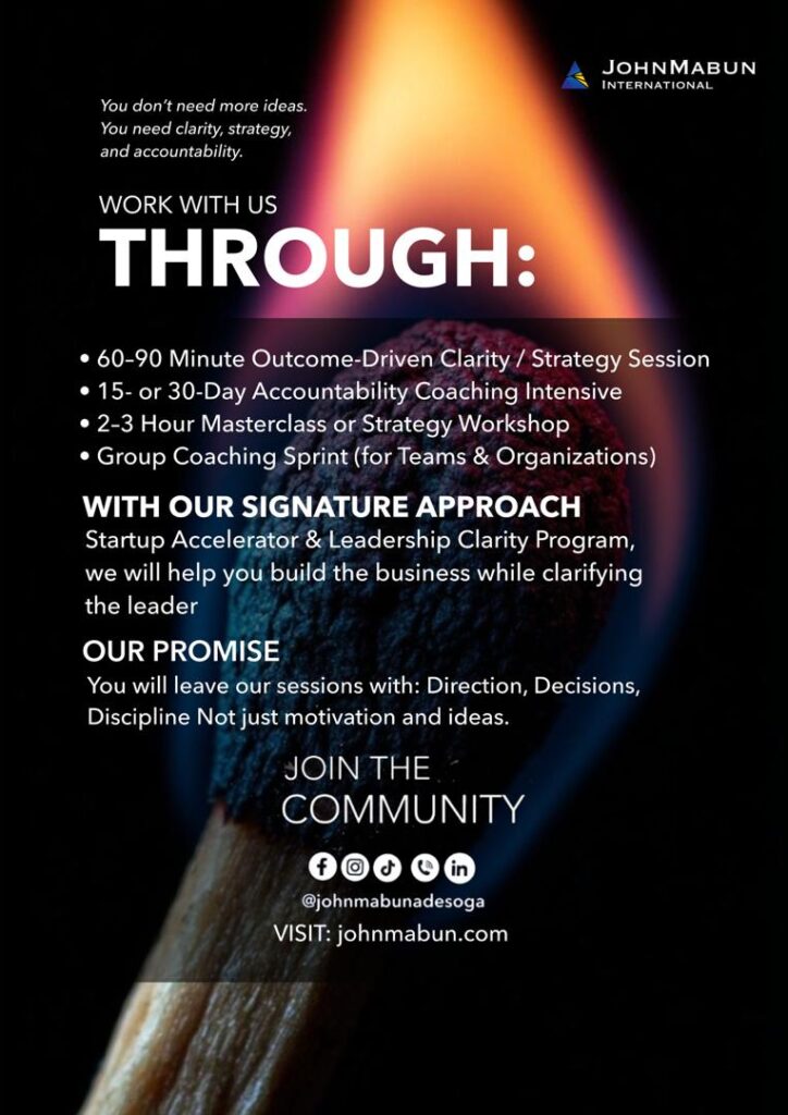 Startup Accelerator & Leadership Clarity Program, we will help you build the business while clarifying the leader. OUR PROMISE You will leave our sessions with: Direction, Decisions, Discipline Not just motivation and ideas.
